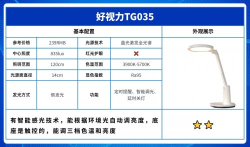 护眼台灯排行榜第十名:好视力TG035(推荐指数:⭐⭐⭐)