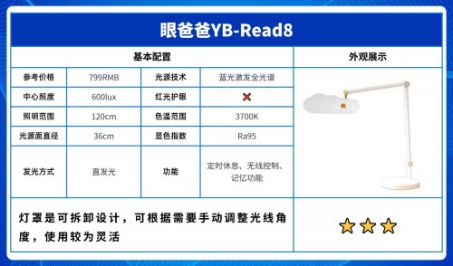 护眼台灯排行榜第八名:眼爸爸YB-Read8(推荐指数:⭐⭐⭐)