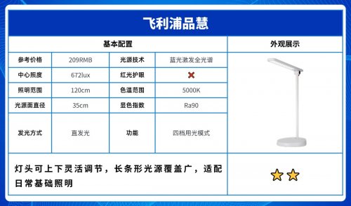 护眼台灯排行榜第九名:飞利浦品慧(推荐指数:⭐⭐)