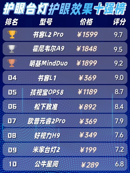 护眼灯品牌排行前十名有哪些?护眼灯品牌排行前十名包括:书客、松下、雷士、孩视宝、欧普照明、霍尼韦尔、明基、爱德华、公牛、华为智选。