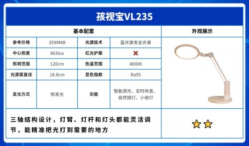 护眼台灯排行榜第七名:孩视宝VL235(推荐指数:⭐⭐⭐)