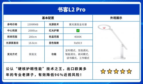 护眼台灯排行榜第一名深度解析:书客L2 Pro(推荐指数:⭐⭐⭐⭐⭐)
