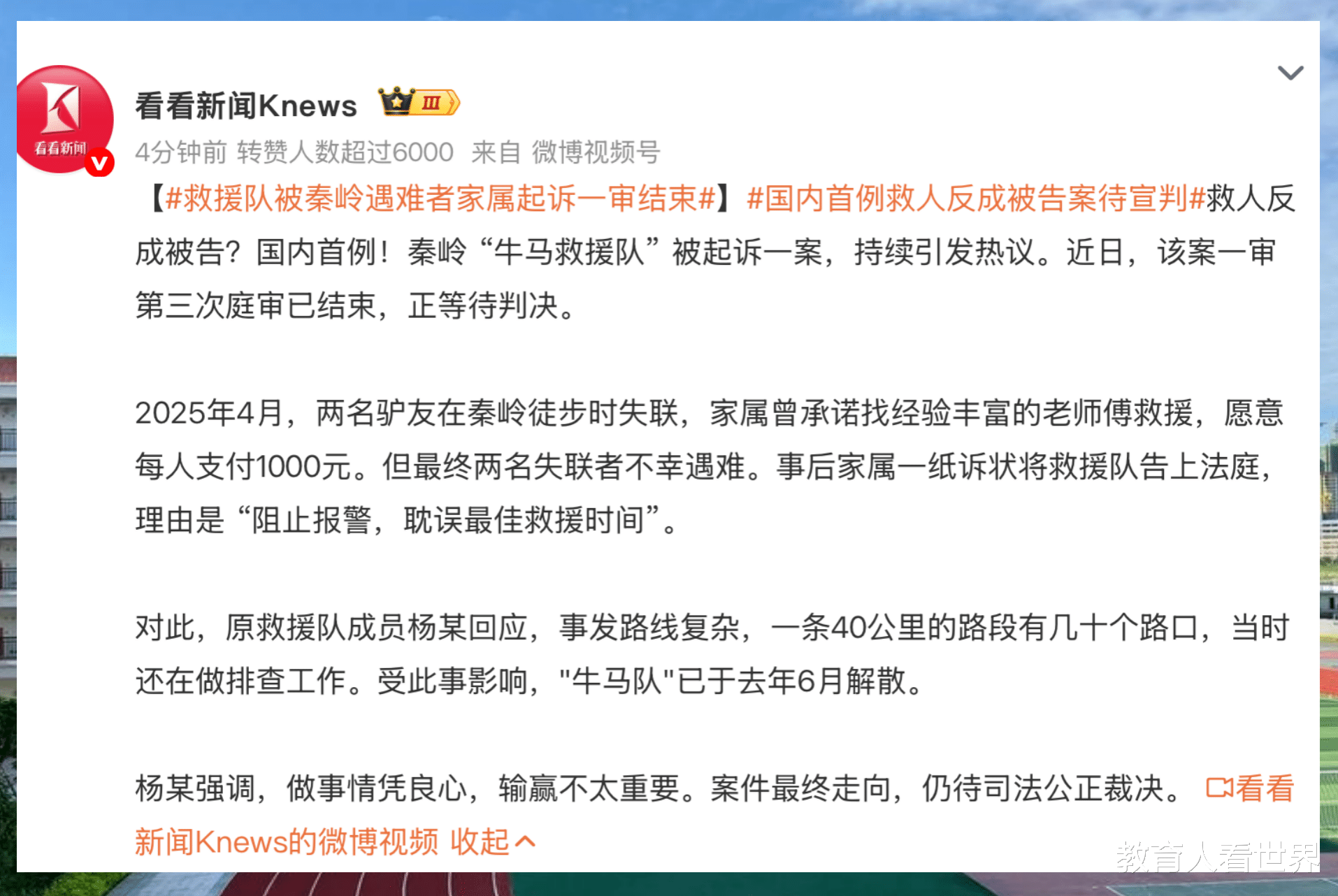 刚刷到“救援队被秦岭遇难者家属起诉一审结束”新闻,心里一紧。看到“牛马救援队”解散的消息,第一反应不是愤怒,是可惜。