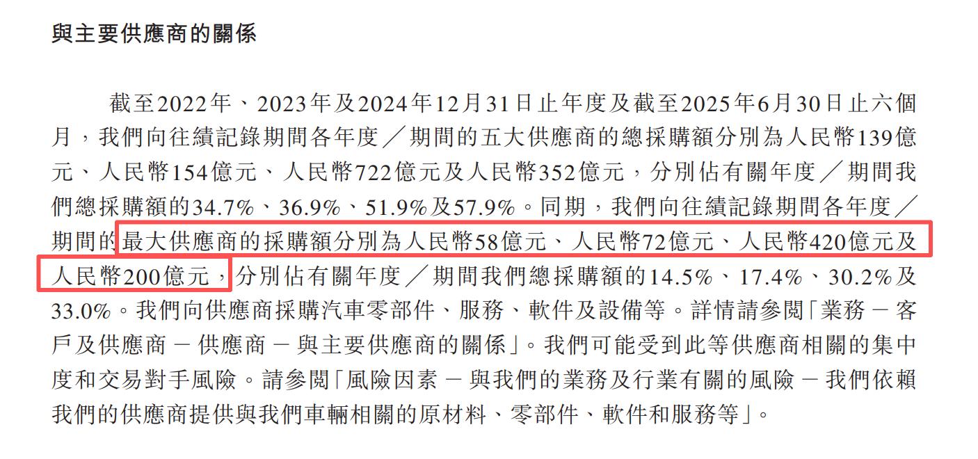 赛力斯的港股招股书显示,2021年合作造车开始,短短三年半时间,赛力斯砸给华为的采购费累计超过了750亿元,光是2025年上半年就付了200亿。折算下来,每卖出一辆问界汽车,就有约13.6万元流向华为。