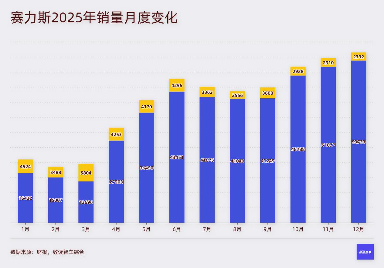 时至今日,问界仍然是赛力斯最大的仰仗。2025年,除了部分月份有波动,几乎所有月份,以问界为主的“赛力斯汽车”销量都占据9成以上,而其他新能源品牌销量,在低价区间,却始终难以实现月销破万。