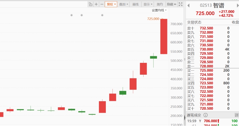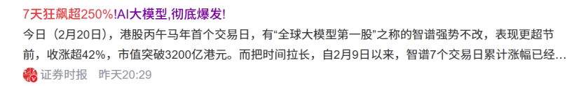 值得注意的是,若把时间拉长来看,自2月9日以来,智谱7个交易日累计涨幅已经超过250%。