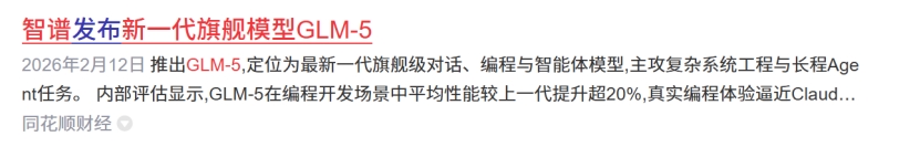 智普股价暴涨或与最新大模型有关。2月12日智谱公司推出新一代旗舰模型GLM-5,GLM-5的定位是“面向复杂系统工程与长程Agent任务的基座模型”,旨在处理复杂的编程和智能体任务。