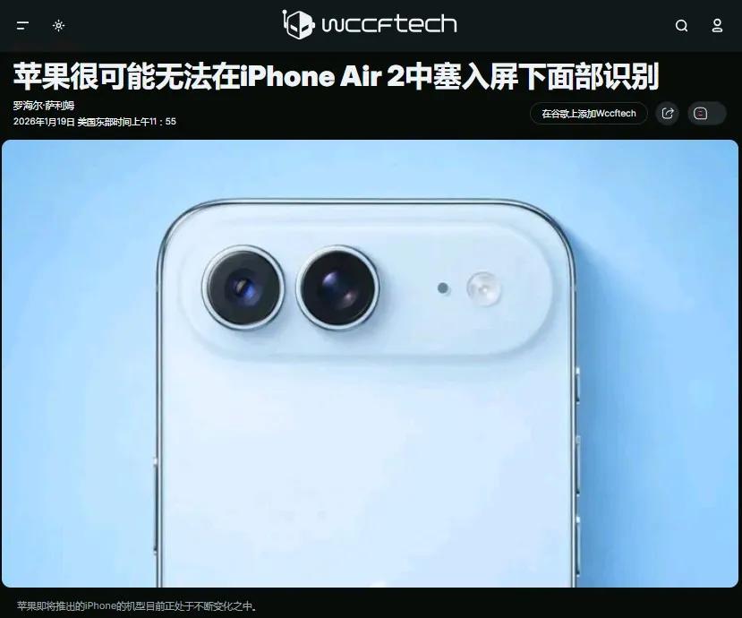 与此同时,@phonefuturist表示,下一代轻薄机型iPhone Air 2由于受机身厚度限制,太过轻薄,因此无法搭载屏下Face ID技术。