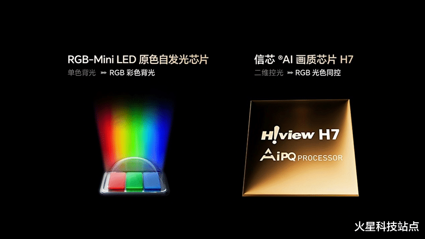海信作为RGB-Mini LED技术的开创者和引领者,在新一代多晶RGB-Mini LED发光芯片的硬件基础上,搭配自研的全球首颗光色同控信芯AI画质芯片H7,具备行业量产最高的3 x 10240控光分区和行业最高的108bits控色精度,通过3D调光等算法,控色更精准、不偏色不串色,彻底解决了传统显示技术的痛点问题。同时,海信RGB-Mini LED在能耗上较QD-OLED和QD-Mini LED降低40%以上,且没有OLED的烧屏风险,兼顾了超高画质与高稳定性。