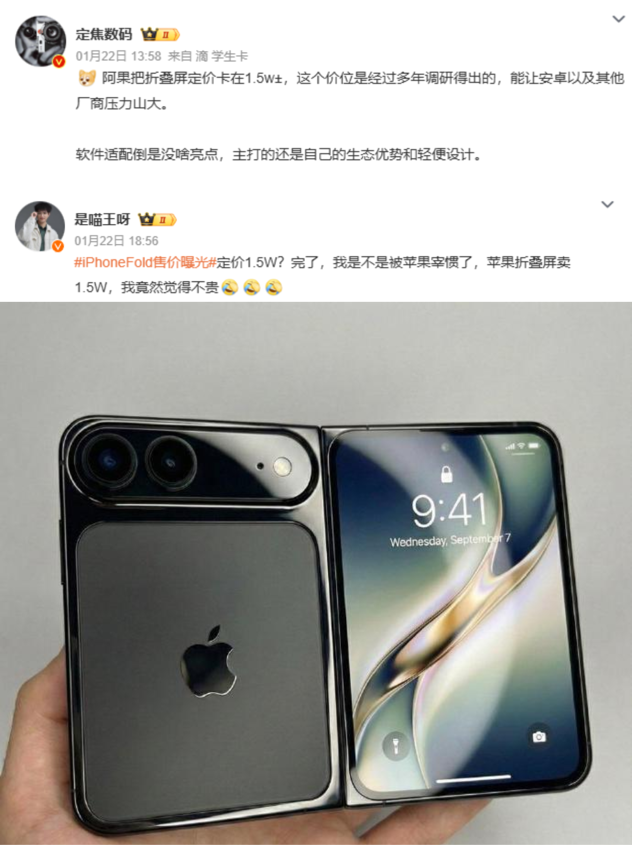 看到爆料消息说苹果折叠屏售价可能会在1.5W💰!据说这个定价是经过多年研究调研得出的,能让安卓其他厂商压力山大,先拭目以待吧?