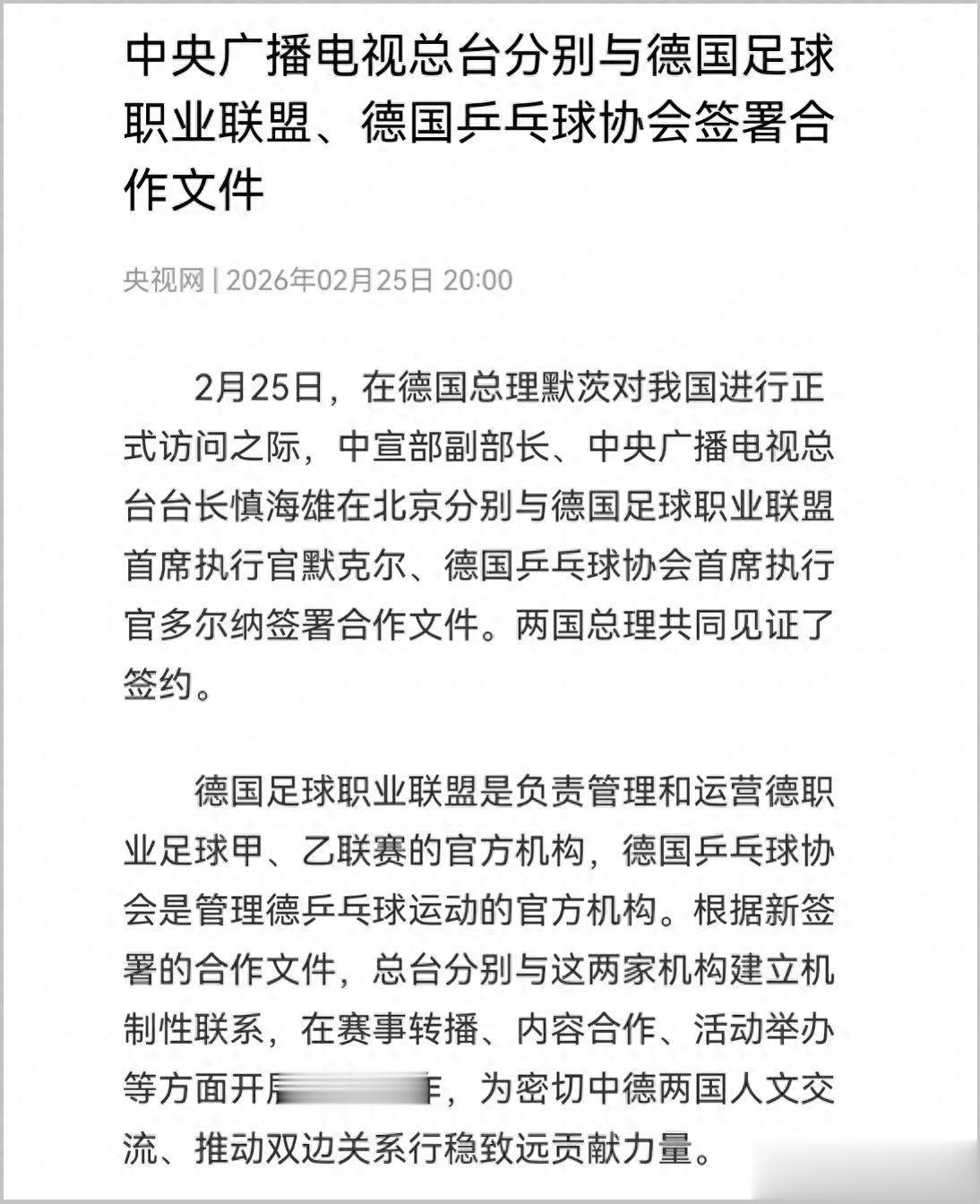 随着德国总理来访,一个让广大乒乓球迷意想不到的合作发生了。我国央视居然和德国乒协签署文件,要在赛事转播、活动举办等方面开展合作。
