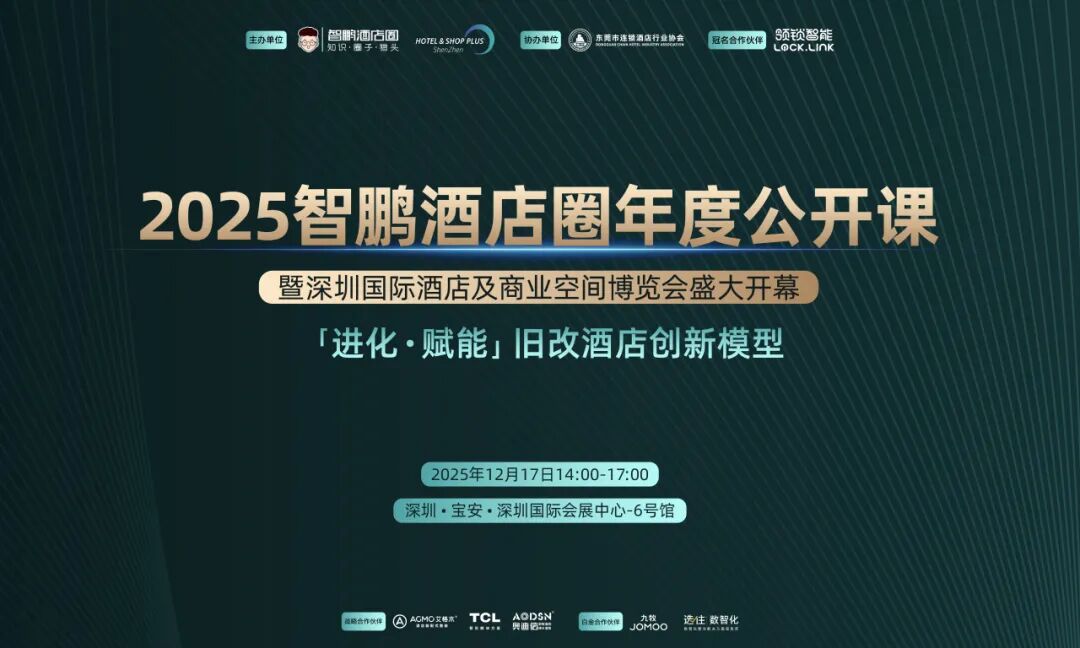 2025年12月17日下午,由博华展览和智鹏酒店圈共同发起,东莞市连锁酒店行业协会协办的「2025智鹏酒店圈年度公开课」,在深圳国际会展中心成功举办!