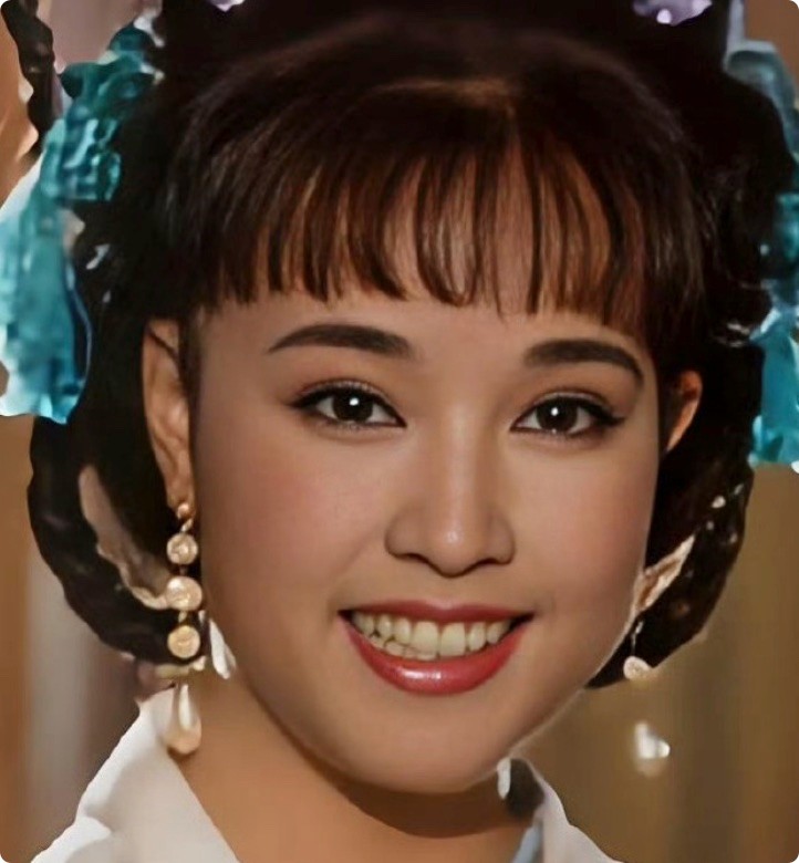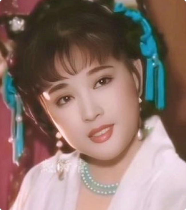 当时的妆造,眼线画得柔和婉转,腮红打在苹果肌上,再配上一头蓬松的少女发髻,硬是让刘晓庆在镜头前减龄三十岁。
