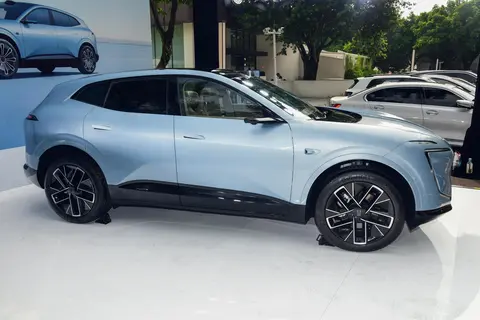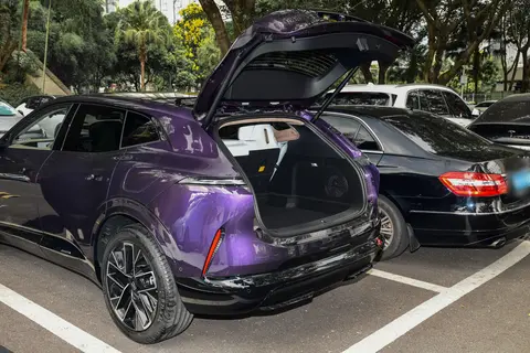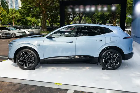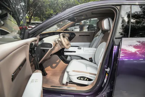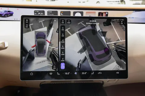 前脸的星旅式F型大灯不错,280颗LED灯珠组成的灯组没有断点,发光均匀柔和,夜间点亮时具有辨识度;搭配碟翼式主动闭合进气格栅,不仅提升了视觉层次感,还能根据工况调节开合度,将风阻系数控制在0.259Cd,为续航与静谧性打下基础。车身侧面,隐藏式门把手与20英寸轮毂的组合简洁利落,HALO交互屏镶嵌于车门之上,10500颗LED灯珠能随充电状态、迎宾场景变换光效,科技感与仪式感兼备。