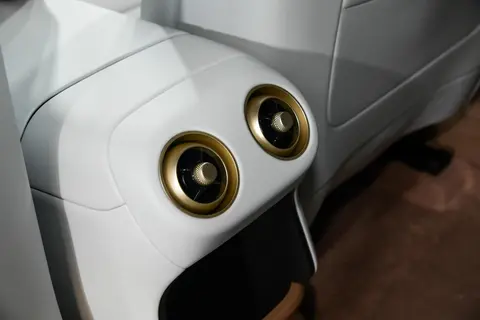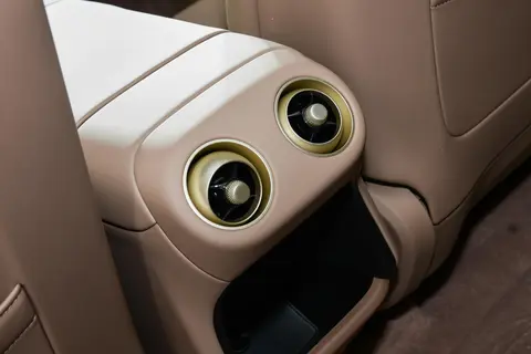 座椅的舒适程度是我们关注的重点。没想到,它给了我惊喜。全系标配前排双零重力座椅,采用Nappa头层真皮材质,表面附着淡淡珠光涂饰,触感细腻且透气性好。座椅支持16向电动调节,包括4向腰托与腿托,一键后仰可达到120°的舒适躺姿,配合3档加热、3档通风与5种模式8点位的SPA级按摩功能,长途驾驶时能有效缓解腰背疲劳。看车的时候,同行的父亲,看到后,一键躺倒后,说真舒服;试驾的时候,在高速上行驶1小时后,朋友开启“腰部舒缓”模式,按摩头会精准按压腰眼位置,朋友说这力度不错,仿佛有专业技师在旁服务。后排座椅同样配备加热、通风与按摩功能,靠背角度可在28-34°间电动调节,我们可以根据自己的坐姿找到舒适的角度。座舱的静谧性也不错,车身内置720°隔音装甲,133处声学处理层层阻隔噪声,100km/h高速行驶时车内噪声仅60dB(A),相当于日常对话的音量,试驾的时候,我们说话也不用刻意的提高音量,即使不开启音乐,也能享受安静的乘坐环境。