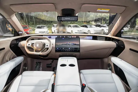智能配置方面,五屏联动的设计具有冲击力:35.4英寸4K全景远端屏清晰直观,行车信息、导航路线一目了然;说实话,这么的屏幕我还很少见;15.6英寸华为2K智慧中控屏反应流畅,支持触控与语音控制;双6.7英寸高清电子外后视屏(需选配)不仅比传统后视镜视野宽一倍,还能在黑夜、暴雨等恶劣天气下保持清晰,大幅提升了行车安全性。
