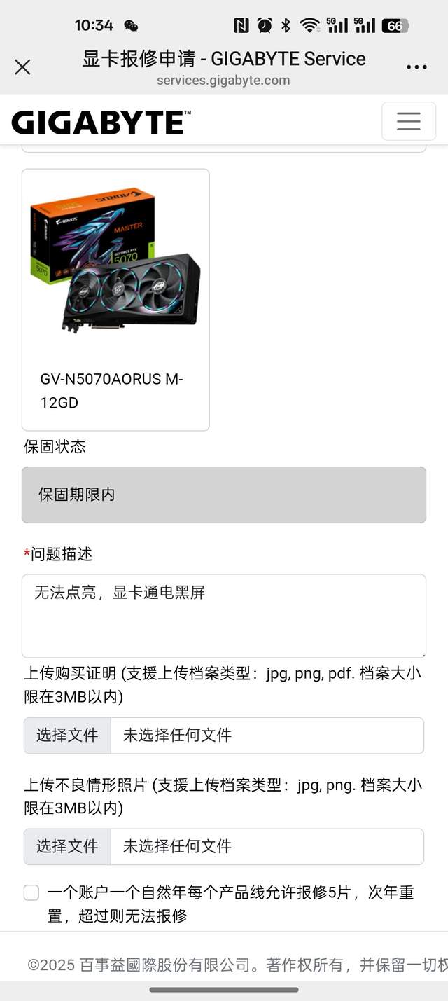 只要这两个就可以了,不需要其他太多的凭证,所以说技嘉支持个人送保还是非常不错的,即使是二手卡,只要没过保,都能享受完善的售后服务。当然如果你遇到更多复杂的问题,必须要拍照的话,下面也是支持上传图片,但这个不是必须的。
