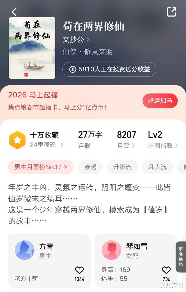 文抄公的这本两界修仙文新书今年元旦上线的,跟上本小说《星空职业者》隔得有点久。