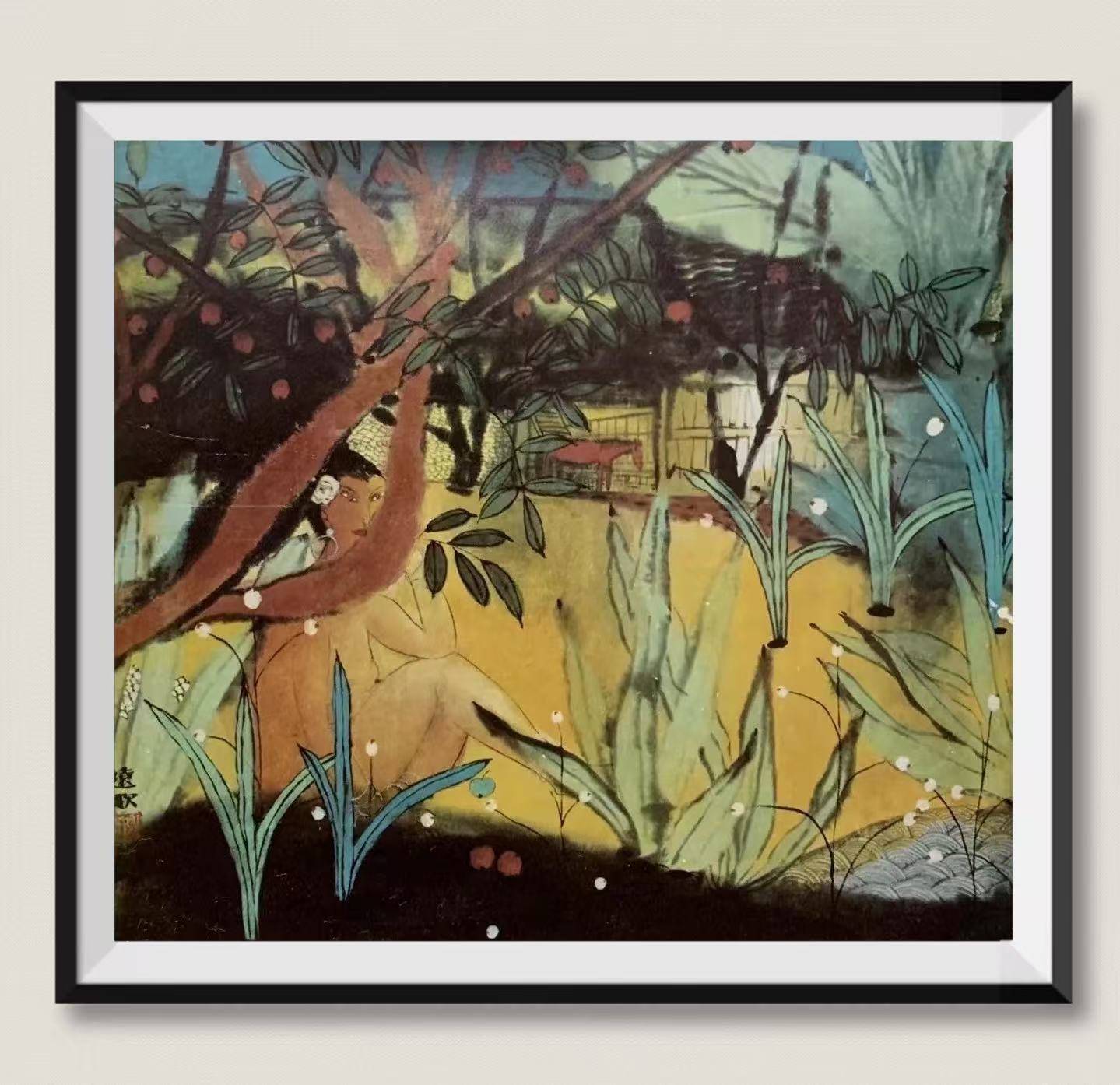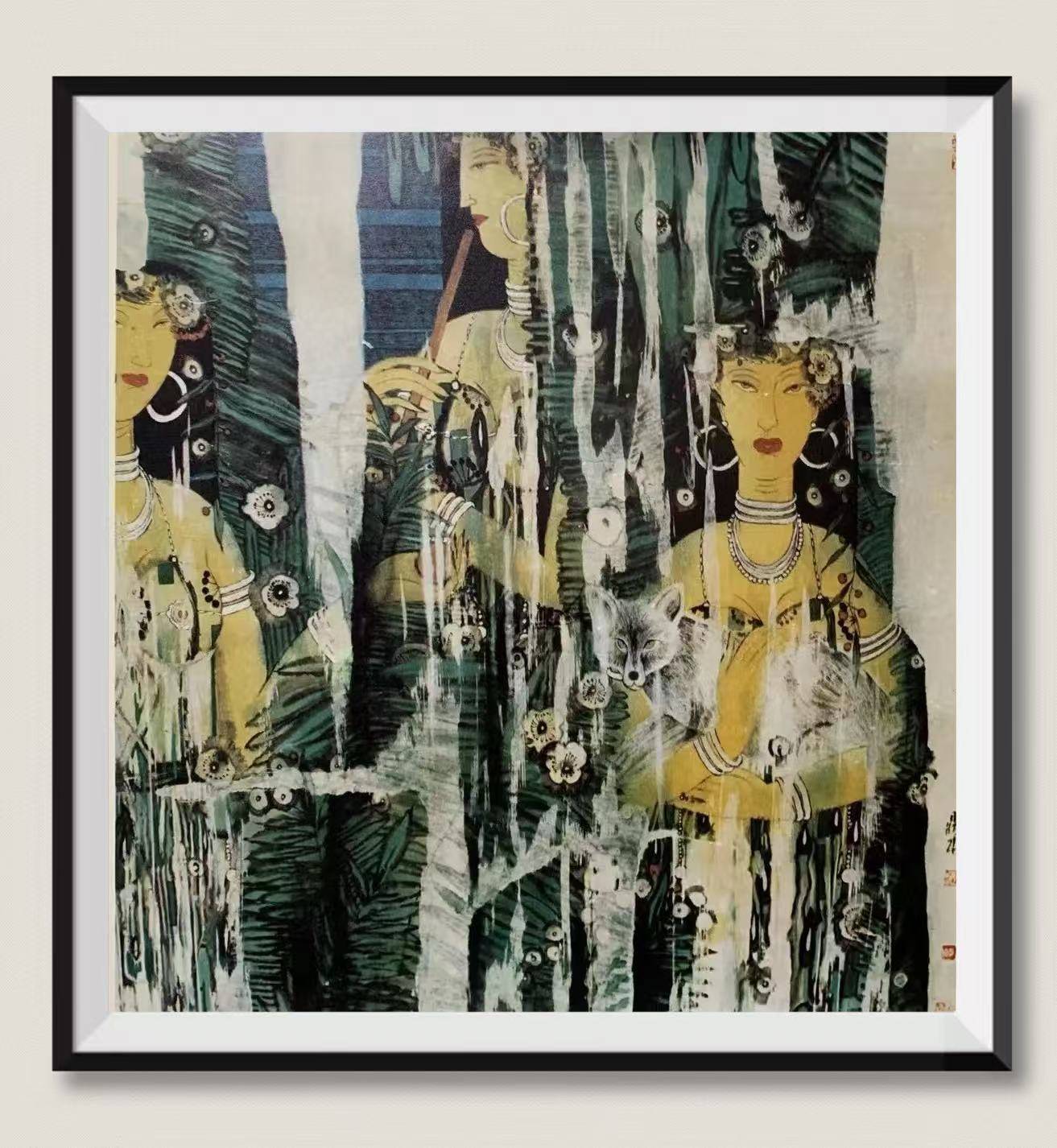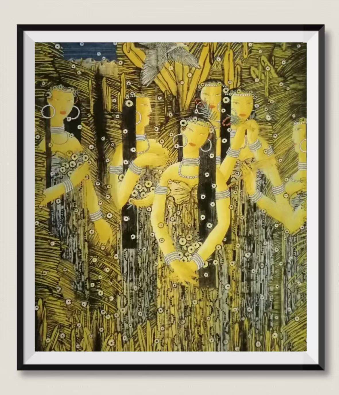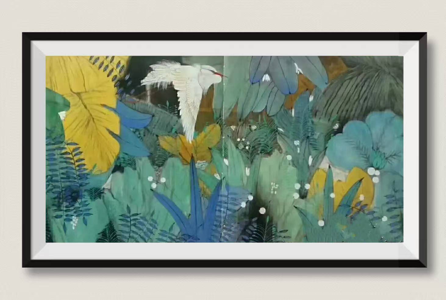李鼎成的《雨林幻境》系列作品,根植并依托于西双版纳神奇而美丽的热带丛林及人文风情且以此为母体,融入了其东南亚诸地之旅的素材积累和毛里求斯等国之行的创作灵感,不拘于一时一地之景之物的描摹,打破和跨越了时空的概念,在现实主义基础上,以理想主义的浪漫情怀将不同时空的异域人文风情,以唯美之笔巧妙地融合于西双版纳的热带雨林之中,独造出源于西双版纳而又异于西双版纳等地的“雨林幻境”审美情境、个性艺术风格,并以抒情、唯美、浓郁、繁密且蕴含装饰意味和当代性的视觉图式子立于当代画坛。