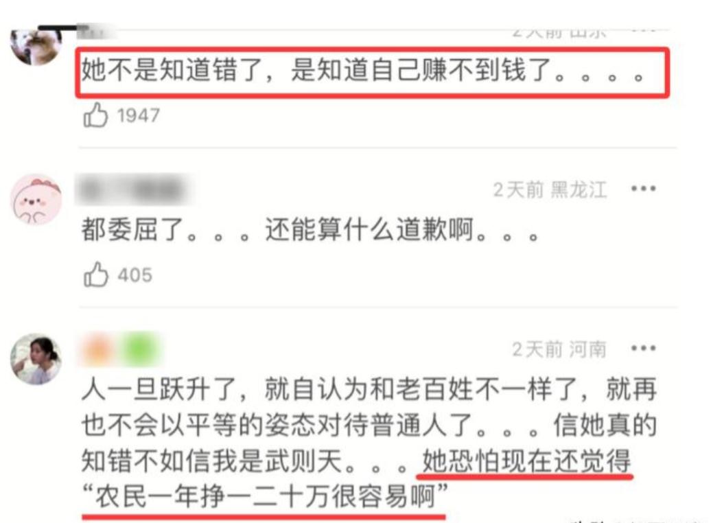 她忘了自己是从农村走出来的,是靠塑造朴实的农村妇女形象才积累下口碑,忘了是千千万万普通观众的喜爱,才让她从二人转舞台走向巅峰,忘了是有人相助才有了今天。