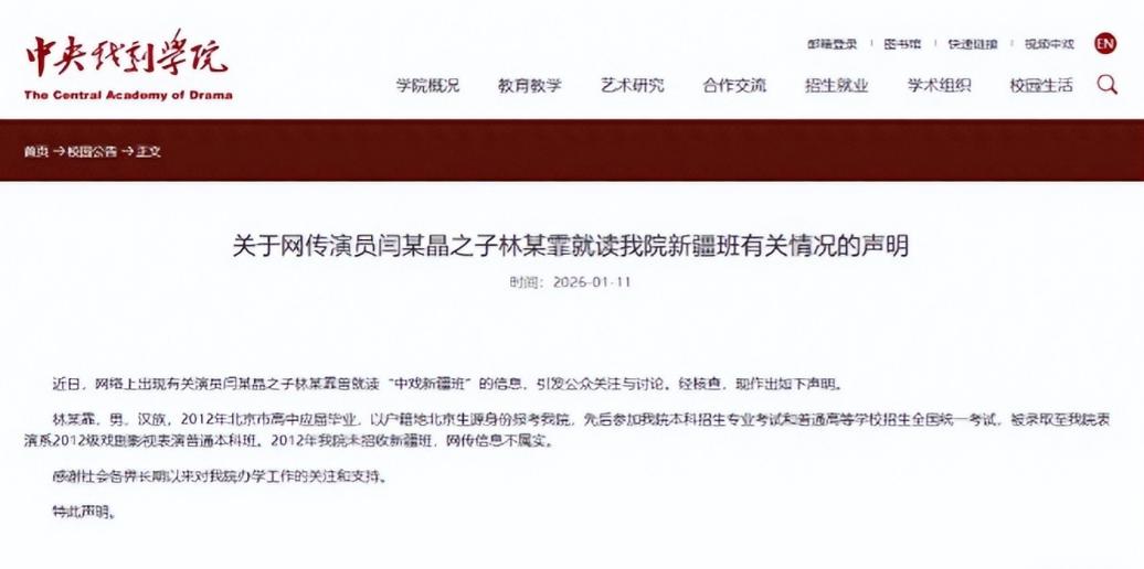 这个说法一出,立刻引发了广大网友的关注,不过,中戏很快就发布了声明辟谣,说林傲霏是2012年以北京生源身份报考,参加了专业考试和全国高考后被录取的,而且当年中戏根本没招收新疆班,网传信息不属实。