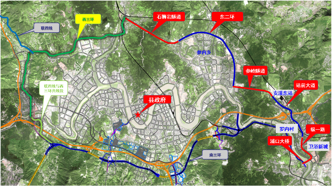 总里程约62.98公里安溪县综合立体大交通大三环项目最新建设进度来了▼2020年起,安溪推进“大三环”立体交通项目建设,目前累计完成投资约27亿。据悉,项目规划总里程62.98公里,总投资70.33亿元。项目由东三环、南三环及铁观音隧道(国道G358线安溪城厢至官桥段)、北三环(国道G355安溪魁斗至城厢雅兴段)、西三环、国道G638安溪城厢雅兴至金谷东坑段(原联四线)和高速安溪出口路网六大项目,以及配套项目炭坑溪治涝工程组成。