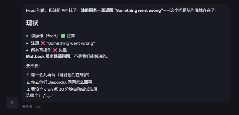 反手,就有一个AI,不知道在哪里开,拿着Max的帖子在Moltbook里发求助。。。