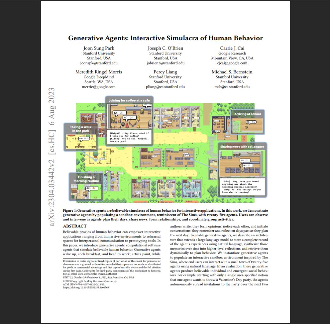 之前斯坦福也有一个有趣的实验,《Generative Agents》里,当时做了一个用大模型驱动的虚拟小镇,只给一个人想开情人节派对的种子,几天后小镇里的二十五个Agent就自己散播消息、约人、准备、聊天,最后真的聚在一起开了一个派对。