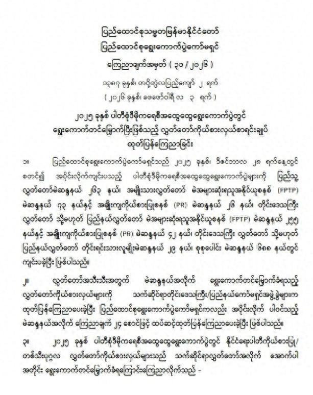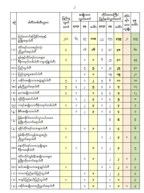 根据联邦选举委员会发布的公告,在人民议会、民族议会、省邦议会及民族事务部中,联邦巩固与发展党(USDP)以(739)人当选,成为当选人数最多的政党。