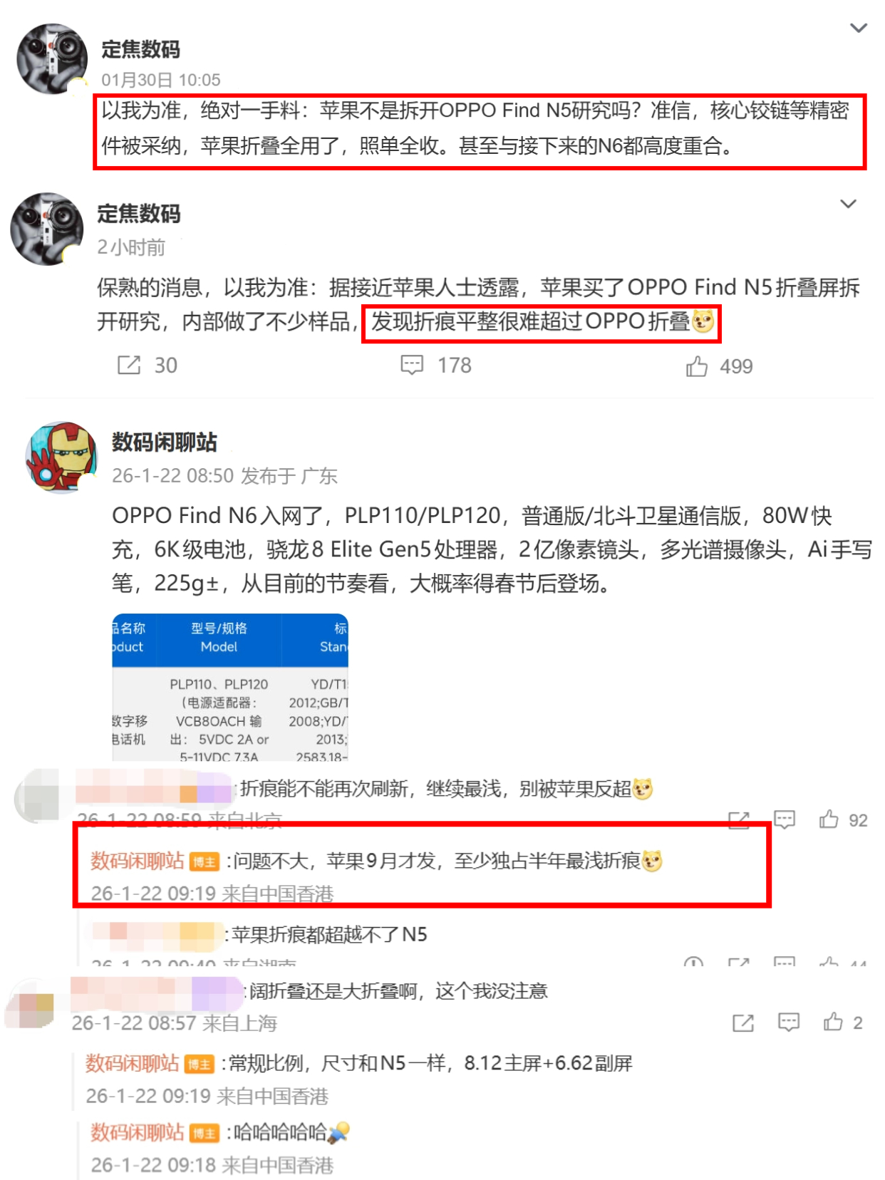 而且汇总了Find N6的爆料,感觉这代的升级很炸裂啊,为了实现无折痕用了一堆黑科技,黑绷带屏幕,钛金属铰链增加强度,屏幕玻璃还支持自修复,三管齐下属实有点狠了