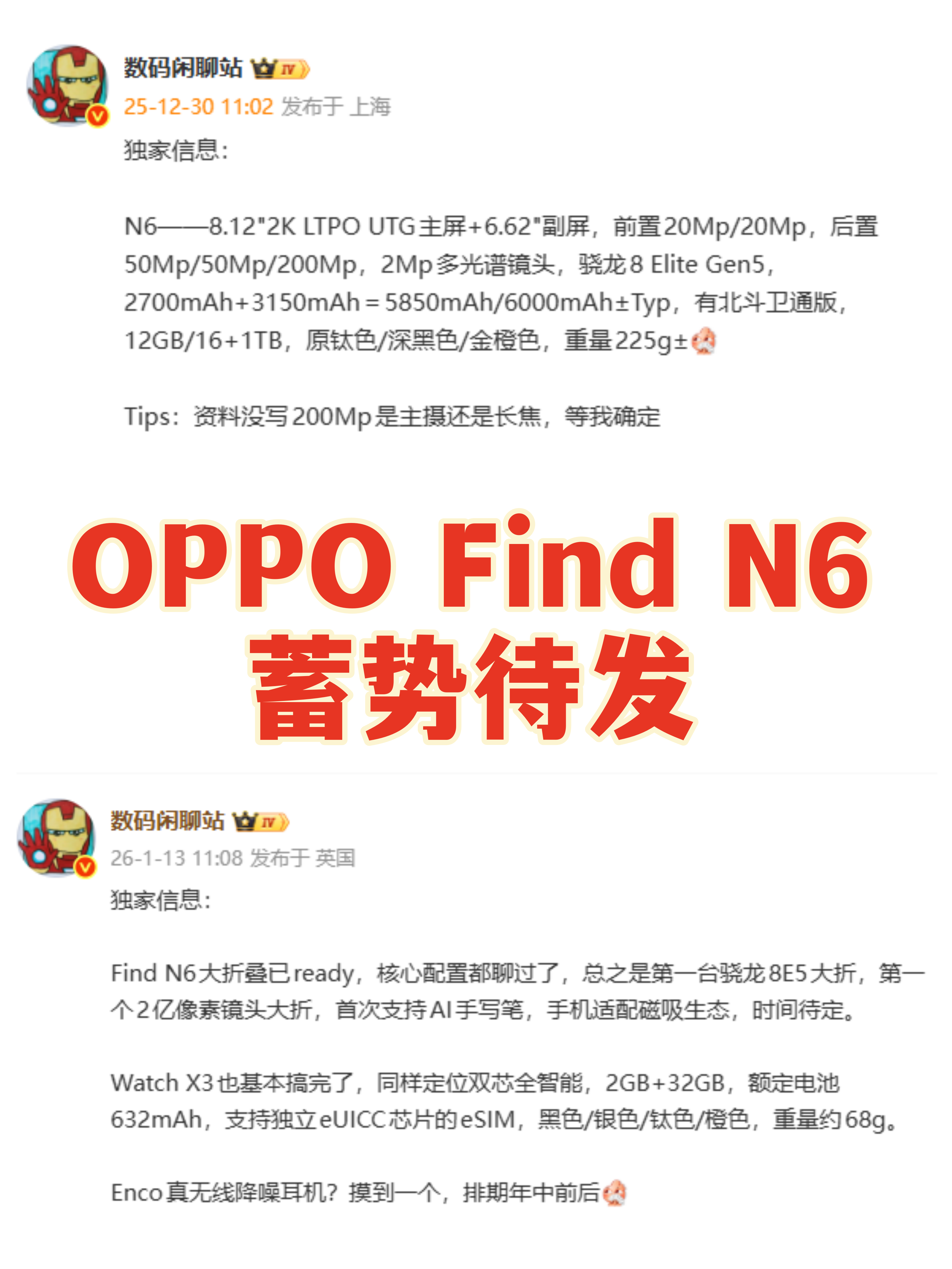 不过纵观整个折叠屏市场,除了苹果以外,别的厂商倒是在影像上下了猛料,比如同样选择2026年亮相的OPPO Find N6很可能自带由5000万像素+5000万像素+2亿像素+200万像素多光谱镜头的后置影像系统而来,这不直接将国产折叠屏的拍摄体验提到Next Level了?!