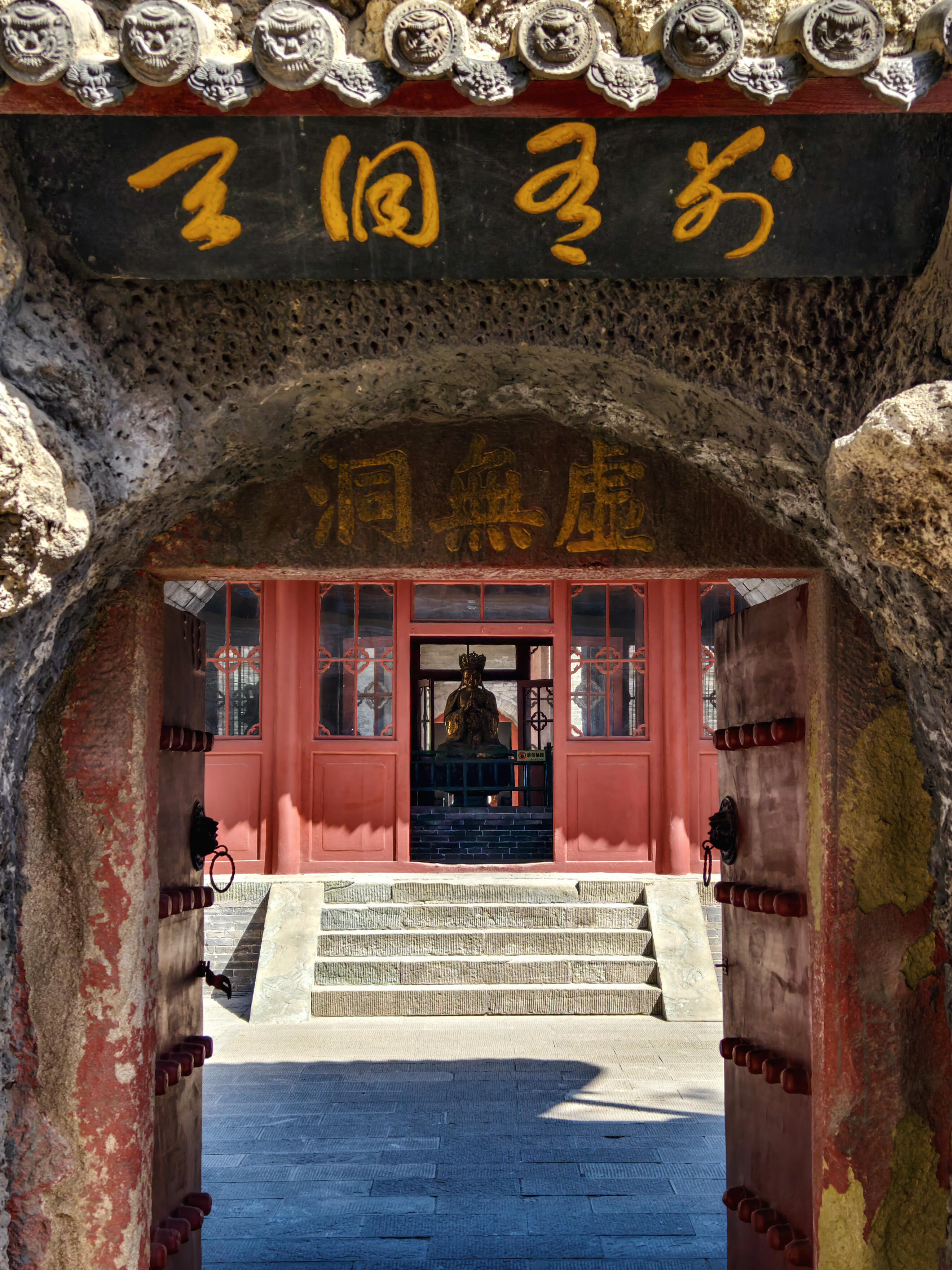 往里走,二进院的“蓬壶佳瑞”牌坊雕花能晃花眼,三进院的吕祖殿香火一直没断过,可真正的好戏在四进院的九宫八卦院。这院子按乾、坤、震、巽、坎、离、艮、兑的方位建,洞顶四面起楼,楼亭之间用围廊串起来,站在中间抬头看,廊檐像个巨大的网,把天切成一块一块的。据说以前道士们在这儿练功,踩着方位走,能避祸纳福。现在游客们也学着转圈,有人转着转着晕了头,笑着说:“这八卦阵真能让人找不着北。”可懂建筑的人知道,这院子把道教的宇宙观缩成了方寸之地,每一步都踩着古人对天地的理解,这种巧思,在全国古建中都算独一份。