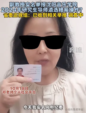 10月18日,沈阳音乐学院副教授祁伟耿通过社交平台发布了一段视频,实名举报沈阳音乐学院在2024年研究生导师遴选过程中涉嫌弄虚作假和暗箱操作的问题。这一视频引起了网友的广泛关注。