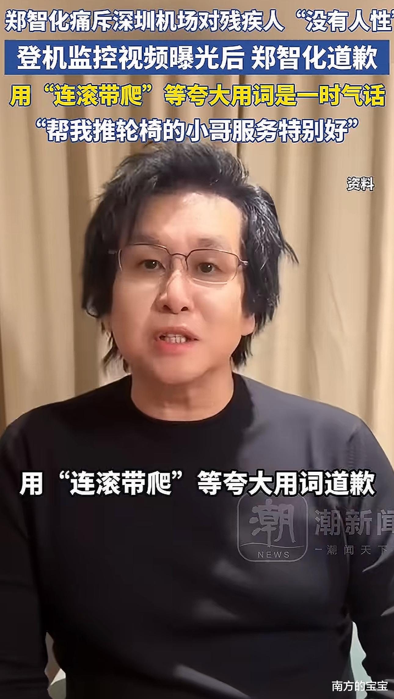 到了27日,郑智化又发了一条道歉声明,承认"连滚带爬"是"情绪化用词",还特意感谢了推轮椅的小哥。