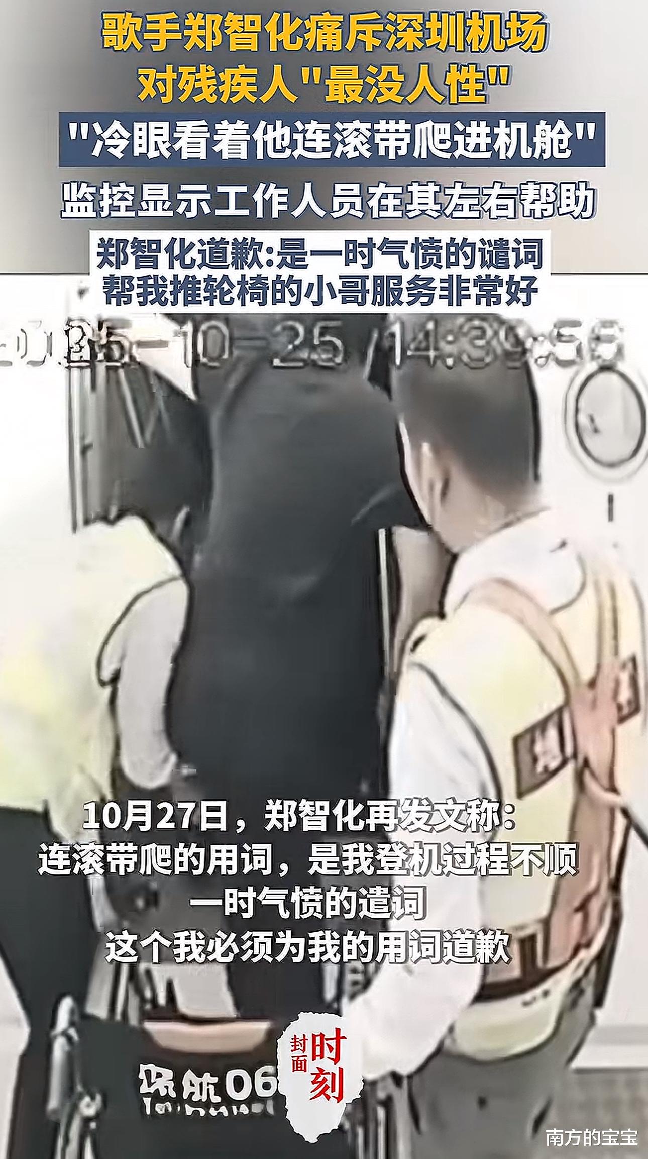 10月25日,这位唱着《星星点灯》的歌手,在社交平台发文,控诉深圳机场的升降车和机舱门25公分高度差,导致他轮椅推不进去。