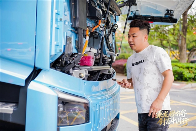 提到本次活动的主角乘龙翼威5纯电牵引车,一位佛山本地卡友难掩兴奋。在他看来,这辆车自重轻,一趟能多拉好几百斤,算下来一年能多赚两三万,电耗还低,这些都是实打实的收益。