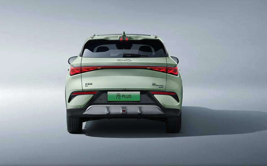 比亚迪元PLUS的设计则偏运动,Dragon Face 3.0家族式前脸辨识度很高,车身线条硬朗,尾部的贯穿式尾灯和扩散器造型,营造出不少动感。它的轴距是2720mm,比银河E5略短一些,车身高度1615mm,也稍矮一点,整体姿态更像跨界车。