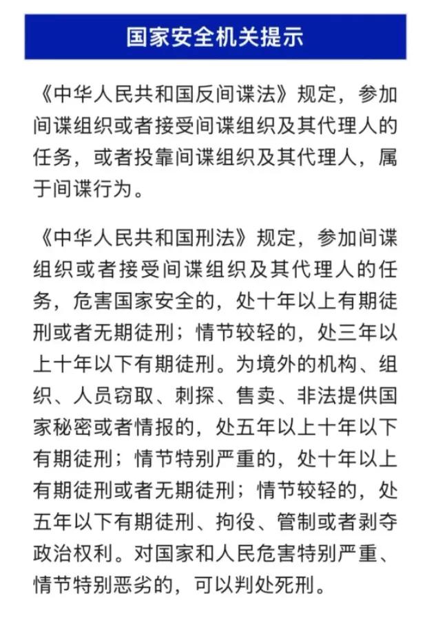 就在前不久,国家安全部宣布了一起重大的间谍事件。