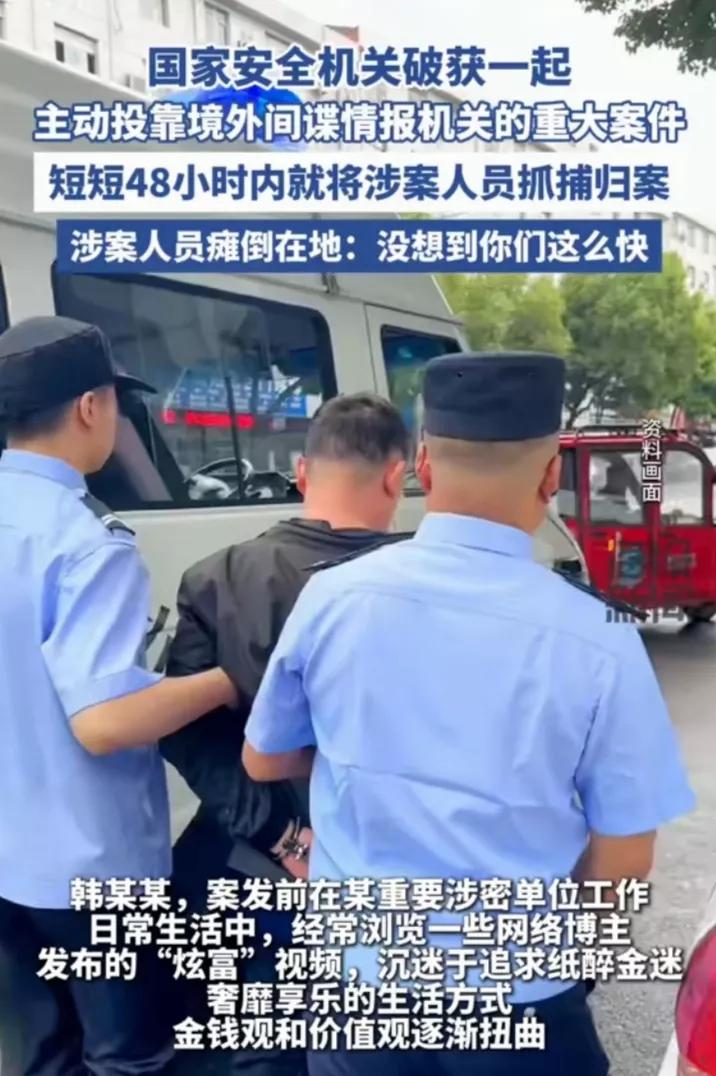 犯罪行为涉及的是某关键涉密机构内任职的韩某某。因常观赏网红炫耀财富的影片与直播,他遂渐对薪资水平不满,内心憧憬奢华逸乐、灯红酒绿的生活。