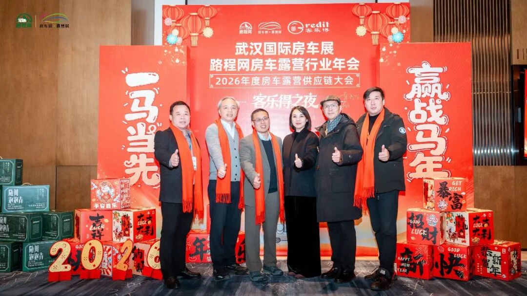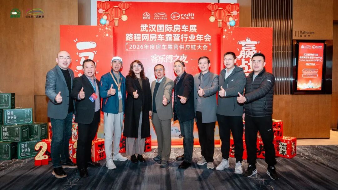 2026年1月9日,2026路程网房车露营行业年会&年度房车露营供应商大会・客乐得之夜在武汉顺利举办,作为中部(武汉)房车露营旅游博览会重要同期活动之一,大会汇聚了来自房车整车制造、零部件供应、材料生产、营地运营、租赁平台、行业协会及投资机构等全产业链的众多代表,共话行业成果与未来趋势,推动产业链上下游合作,有效构筑起促进中部房车露营产业高质量发展的资源对接与交流平台。