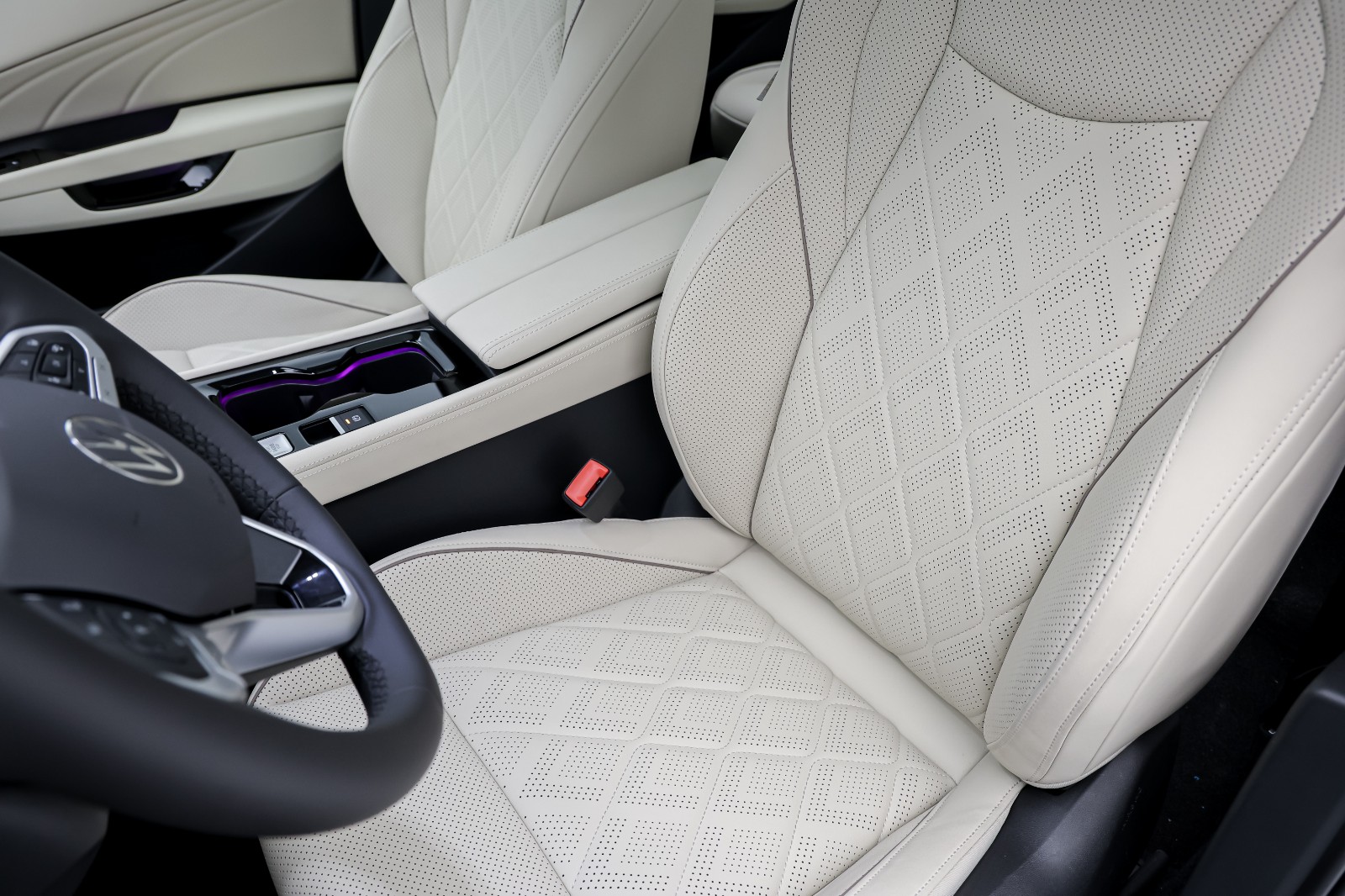 尾部设计同样亮点十足。大众独创的SurfaceLED平面光导技术让尾灯呈现出均匀细腻的光线,3D造型充满层次感;行业首创的可翻转发光尾标,既凸显品牌辨识度,又集成灯光、后盖开启及摄像头功能,带来一体化的高级使用体验。动态流水转向效果搭配3种设定状态的离回家动画迎宾功能,让解锁和闭锁车辆的过程充满仪式感。外后视镜投影灯在解锁时点亮大众专属logo,内置5片光学级成像镜片,投射效果细腻均匀,进一步提升了整车的精致感。