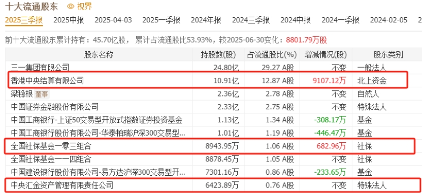 北上资金持仓:三季度北上资金加仓9107万股,连续7个季度持续加仓,累计加仓5.62亿股。北向敢于连续7个季度加仓,看好公司从国内工程机械龙头向全球工程机械龙头的前进。另外,全国社保基金103组合加仓682万股;中央汇金公司重仓6423万股。