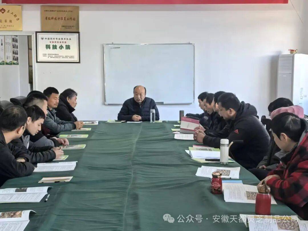 2025年12月26日,安徽天都灵芝制品公司董事长、“蘑菇大王”丁伦保为残疾员工开展安全培训。