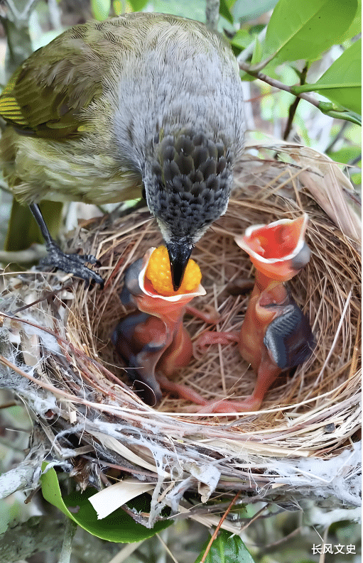 鸟类还很会学习。它们能看着其他同类学会新技能,也能通过试错解决难题。就像小学课本里的乌鸦喝水,它发现水位够不到,就一次次叼来石子放进瓶子,慢慢抬高水位(虽然直接去河里喝水更好,但也侧面能看到它们解决问题的想法)。也正是这份认知力,让它们能造出适配生存的鸟窝,开口朝上就是智慧的体现。开口朝上的鸟窝,能最大程度利用树枝承重。鸟儿用枯树枝、干草编织巢穴,再铺一层软羽毛当内衬,朝上的开口能让这些保温材料牢牢待在窝里,不会轻易散落。这种“上宽下窄”的碗状结构,抗风能力很强,哪怕刮大风、树枝晃动,也不容易整体倾覆,窝里的幼鸟也不容易掉下来。朝上的开口能充分接住阳光,提升巢穴温度,还能保持通风,减少细菌滋生。雏鸟的体温调节能力差,适宜的阳光、温度和通风环境,能帮它们健康长大,也符合鸟蛋孵化的温度要求。同时,亲鸟往返喂食也更方便——雏鸟进食时会仰着头,开口朝上能让亲鸟精准投喂,还能轻松梳理雏鸟的羽毛。