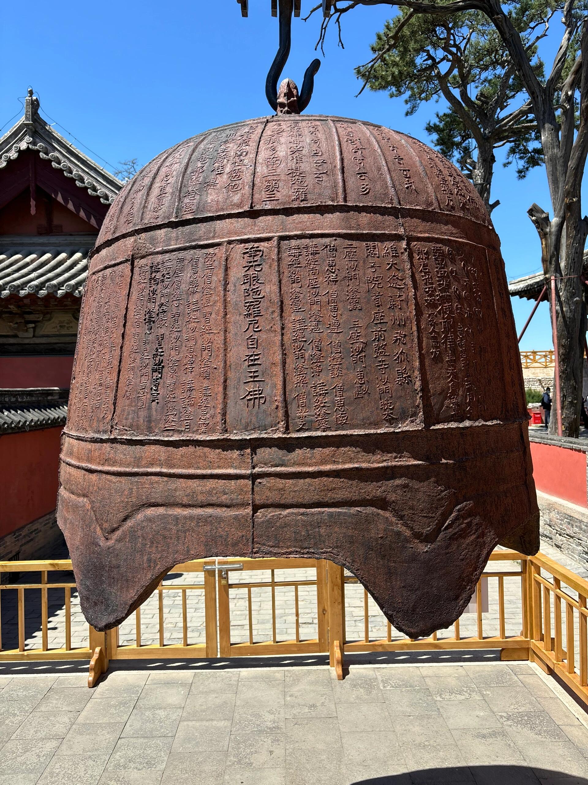 钟楼内的辽天庆四年铁钟是另一件镇寺之宝。2.5米高的钟体上,汉字铭文记载着“大辽蔚州飞狐县武遂乡”的捐铸信息,清晰列出了施主姓名、官职乃至所捐铁料斤两,堪称辽代基层社会的档案记录。梵文铭文则刻着密宗咒语,字体为悉昙文,笔画间的连笔处理带着草原书写的流畅感。当手指划过“皇图永固,帝道遐昌”的汉字,再触碰到蜿蜒如蛇的梵文,两种文明在同一钟体上的碰撞,恰似辽代“因俗而治”政策的具象化。