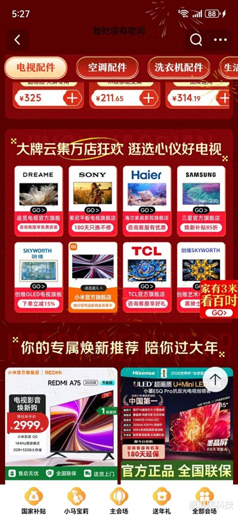 马年春晚,追觅AI电视V3000在《下一站春晚》《马上春晚》等国家级节目亮相后便直接爆火,不仅直播间被挤爆,更是霸榜春节会场第一名,成为名副其实的行业顶流。而这背后,就离不开其做搭载的独家黑晶臻彩屏。