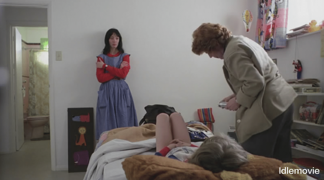 库布里克很会抓人眼球,像女主跟医生在客厅聊丹尼时,女主手中的烟灰很长却一直没弹,观众的焦点就会不自主的聚焦,跟着库布里克的引导走。