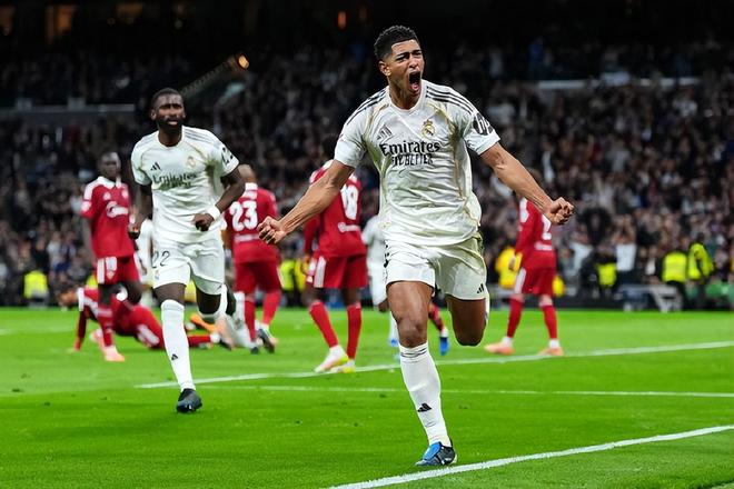 西甲第17轮焦点战,皇马主场2-0击败塞维利亚,以胜利完美收官2025年赛事。此役赛前深陷下课危机的阿隆索压力骤减,球队距西甲榜首巴萨仅差1分。比赛初段皇马防线略显不稳遭球迷嘘声,但随后逐渐掌控局势,第38分钟,罗德里戈右路任意球传中,贝林厄姆抢前点头球破僵,这也是他2025年为皇马打入的第13球。