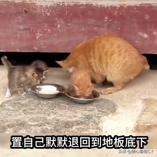 可当四只小奶猫怯生生钻出来,却吃不惯猫粮时,猫妈妈立刻停下进食,默默退到一旁,自己饿着肚子转头给幼崽喂奶,这份母爱无声却厚重。