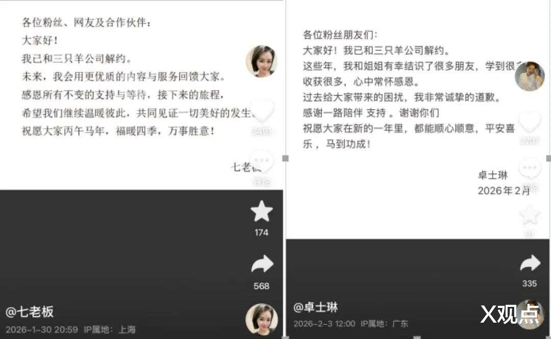 紧随其后,千万粉丝级主播卓仕琳同步解约,两人双双关闭相关动态评论区,似要与这段过往彻底切割。